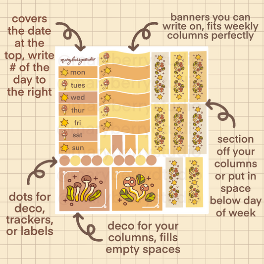Cozy Mushroom Weekly Planner Sheet Digital Download